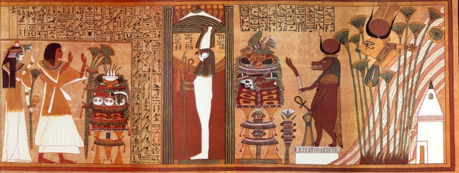El papiro original es propiedad del Museo Británico en Londres, registrado bajo el nº 10.470, formando parte de las colecciones del museo desde 1888. Las 37 láminas originales se pueden ver en el sitio del museo : http://www.britishmuseum.org/, haciendo click en “Research”, luego ingresando “Search the collection database,” y finalmente ingresando “Papyrus of Ani”. También se puede ver la bellísima imagen redigitalizada y completa, de la totalidad de este papiro, con los colores realzados y los contornos retocados, en el sitio perteneciente a una prestigiosa institución educativa norteamericana, denominada Vassar College, ubicada en el Hudson Valley en el estado de Nueva York, http://projects.vassar.edu/bookofthedead/, del cual se reproducen las siguientes 17 imágenes, a modo de ilustración, que conforman la totalidad del papiro. En el antiguo Egipto el ser humano tenía el anhelo de vivir para siempre al lado de sus dioses, esperanza que, con muy escasas excepciones, ha caracterizado a todas las concepciones religiosas que han existido a lo largo de la historia. El Panteón Egipcio es uno de los más extensos que se conoce, ya que los creyentes, como corresponde a toda religión politeísta típica, explicaban absolutamente cada suceso natural que no comprendían a través de la existencia de uno u otro Dios. Había Dioses más importantes que otros y, naturalmente, algunos que únicamente se adoraban en algunas zonas o durante algunas épocas concretas, lo cual también estaba influenciado por la moda del momento. Sin embargo, había una cantidad de Dioses que se veneraban en todas partes y eran muy importantesEl hombre egipcio tenía una visión de la realidad que impregnada por la magia difería claramente de la que poseen los hombres modernos. En el Egipto de los faraones las creencias de los individuos estaban dominadas por unos componentes religiosos, rituales y mágicos, que hacían que todo adquiriese un sentido transcendental, que en nuestros tiempos, dominados por un modo de vida subordinado al pensamiento científico, hemos perdido. Tomemos como ejemplo la Inscripción en la tumba de Petosiris, sumo sacerdote de Thot en Hermópolis : «Construí esta tumba en esta necrópolis, junto a los grandes espíritus que aquí están, para que se pronuncie el nombre de mi padre y el de mi hermano mayor. Un hombre es revivido cuando su nombre es pronunciado…» El poder de la palabra Dentro de ese contexto, los egipcios pensaban que la palabra poseía un intenso poder mágico, gracias al cual los sacerdotes, buenos conocedores de la naturaleza de los hombres y de los dioses, podían realizar peticiones y súplicas a estos últimos que, realmente, no eran tales peticiones sino órdenes que los dioses habrían de ejecutar. El propio rey, cuando deseaba algo, lo ordenaba a través de sus palabras; esas órdenes eran obedecidas de inmediato por los hombres, de modo que la palabra del faraón, dios en la tierra, iba creando la realidad, día tras día. «Yo soy la Gran Palabra», declarará el faraón en los «Textos de las Pirámides», expresando así que con su verbo el rey puede dar vida a todo lo que desea. En un primer momento, será el corazón del monarca el que concebirá una idea; posteriormente ésta será transmitida como orden a través de la palabra e inmediatamente los hombres se ocuparán de que ese deseo se transforme en realidad. Cuando la muerte alcanzaba a una persona, si su nombre, sus palabras, eran conservadas, se estaba asegurando la supervivencia del fallecido. Por contra, si el nombre era destruido, la persona sería aniquilada. En ese caso ocurriría lo que los egipcios más temían: el hombre cuyo nombre era olvidado dejaba de existir, pero es que, además, era como si nunca hubiese tenido vida. El olvido del nombre suponía la aniquilación de la existencia del hombre. Así habría ocurrido, según las creencias egipcias, con Akhenatón, el faraón cuyo nombre fue borrado, tras su muerte, en todos los lugares, en el deseo consciente de producir la aniquilación y olvido del que había sido un faraón hereje, odiado intensamente por los sacerdotes de Amón y del resto de los dioses. La creación por el Verbo Para los egipcios, y en general para los pueblos semitas, el Creador habría utilizado el poder del Verbo, es decir, la magia de la palabra, cuando decidió que el mundo existiera. El Demiurgo Atum y su emanación Ra, una vez que concebían un elemento no precisaban sino pronunciar su nombre para que este tomase vida. La magia de la palabra permitía que instantáneamente la realidad que expresaba quedase materializada. En la estela de granito del faraón Sabaka, que reinó hacia 710 a. C., que reproduce un manuscrito menfita de origen muy antiguo, se afirma que «toda palabra divina viene a la existencia según lo que el corazón ha pensado y lo que la lengua ha ordenado. Así fueron creados los orígenes de la energía vital, y determinadas las cualidades del ser, gracias a esta Palabra… La orden concebida por el corazón y exteriorizada por la lengua no cesa de dar forma a la significación de toda cosa». Entendemos que es muy significativo que la palabra «Ra», que designa al gran dios creador, fuese escrita en egipcio con los signos jeroglíficos de una boca y debajo de ella un brazo. La boca simbolizaría la idea de «palabra», en tanto que el brazo estaría haciendo referencia a la idea de «acción». En suma, «Ra» vendría a expresar, a través de su nombre, la capacidad de acción del dios que para ello utiliza como medio la palabra. La magia del nombre Dentro de las creencias mágicas sobre el nombre, pensaban los egipcios que éste venía a individualizar a cada persona de una manera plenamente determinante. El destino de cada hombre estaba unido entrañablemente a su nombre; ese es el motivo de que en los ritos funerarios el nombre estuviera considerado como un elemento especialmente valioso de la personalidad, al que s